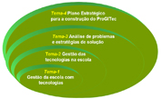 Os quatro temas conceituas são: Gestão da escola com tecnologias, Gestão das tecnologias na escola, Análise de problemas e estratégias de solução e Plano Estratégico para a construção do Projeto de Gestão Integrada de Tecnologias - ProGITec, Eles se articulam entre si formando uma espiral ascendente da formação, a qual se desenvolve integrada com a prática concreta dos cursistas na reflexão sobre o uso de tecnologias no contexto escolar.