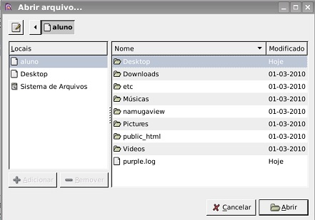 Aparecerá uma janela onde você poderá localizar o arquivo que deseja enviar. O programa lhe mostra seus diretórios e pastas e, primeiramente, você seleciona a pasta onde está seu arquivo.