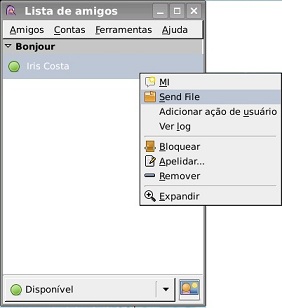 Ou clique com o botão direito sobre o nome do contato e selecione Send File (ou Enviar Arquivo):
