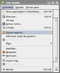 Ou clique com o botão direito sobre o nome do contato e selecione Send File (ou Enviar Arquivo):