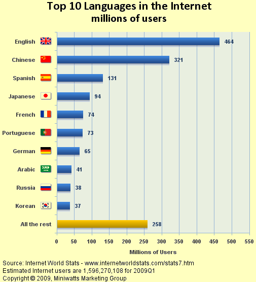 Fatos sobre BlogEm fevereiro de 1998, a gaúcha Viviane Vaz de Menezes foi a primeira brasileira a criar um blog, o “Delights to Cheer”, escrito em inglês. Em março de 1998, Renato Pedroso Júnior, mais conhecido como Nemo Nox criou o primeiro blog em português e até hoje ele existe. O brasiliense Marcus Amorim tem um dos mais antigos blog do Brasil: o Zamorim. Em Janeiro de 2001, foi publicada a primeira reportagem sobre blogs em um jornal brasileiro,a Folha de S. Paulo: "Weblogs reinventam o uso da Internet" de Alexandre Versignassi. Em 31 de agosto de 2009, o Palácio do Planalto publicou seu primeiro blog. Este blog não tem espaço para comentários, mas tem um recurso que facilita referirmos e comentarmos as postagens ali encontradas, nos nossos blogs. Em 2009, segundo a Technorati, indexador de diários virtuais: o número de blogs ativos no mundo é de quase 1 bilhão; a proporção média diária de criação de novos blogs é de 175 mil por dia;o número de páginas está batendo na casa do bilhão. Só no site Blogger.com, a cada minuto, 270 mil palavras são postadas. Em 2009, o Brasil passou a ser o segundo país em número de blog. As linguas mais utilizadas pelos internautas são, de acordo com resultados estatísticos publicados pelo site http://internetworldstats.com: | |
