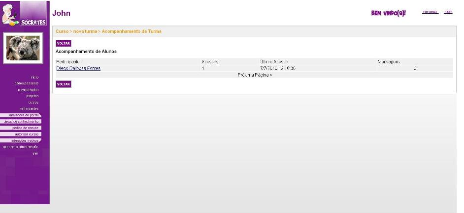 Desta forma, podemos ter uma visão geral da participação de cada cursista, facilitando sobremaneira a intervenção pedagógica por parte dos tutores.