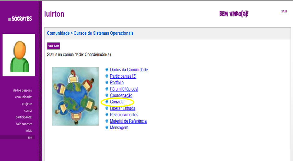 Como dono de uma comunidade, você pode convidar um novo menbro. Para convidar