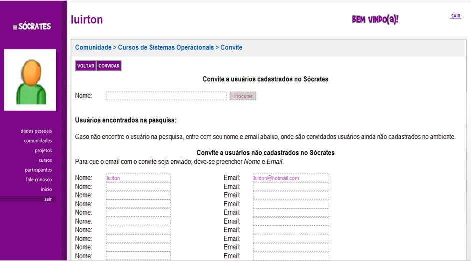 Preencha os dados, dando um nome e o emmail, significativo para o convidar e clique no botão 'Convidar' na