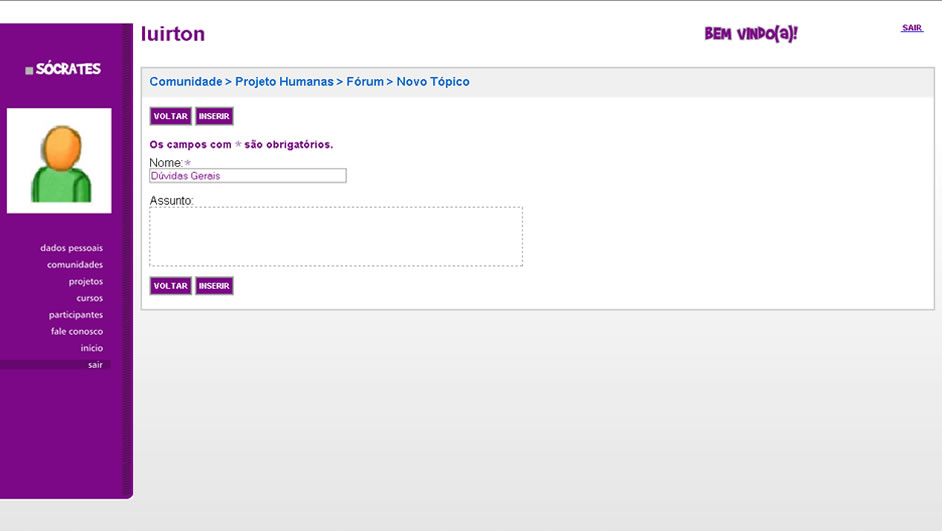 Como membro de uma comunidade, você pode ainda criar um novo fórum que trate de um tema de interesse dos participantes. Para criar um fórum,