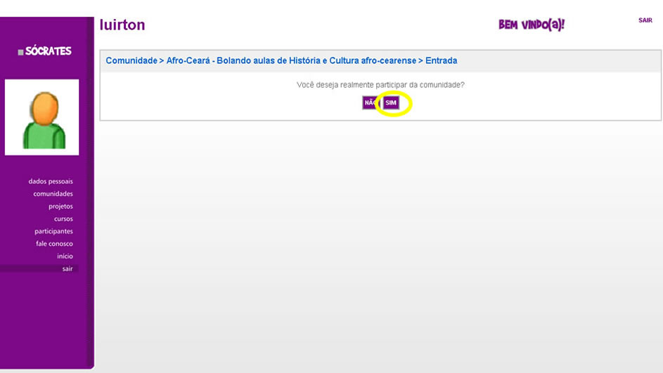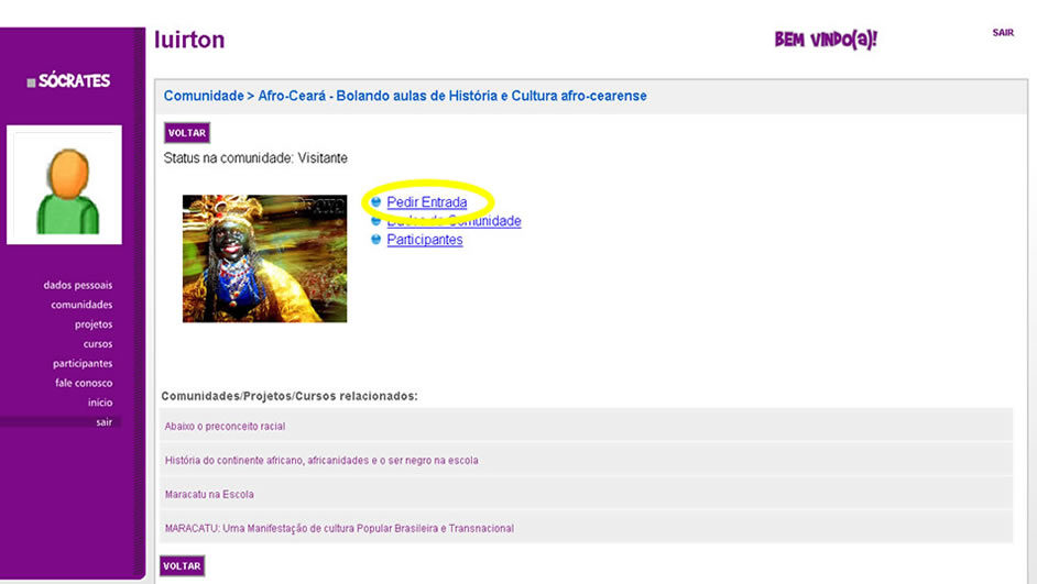 a comunidade na qual você deseja ingressar, clicando sobre o
