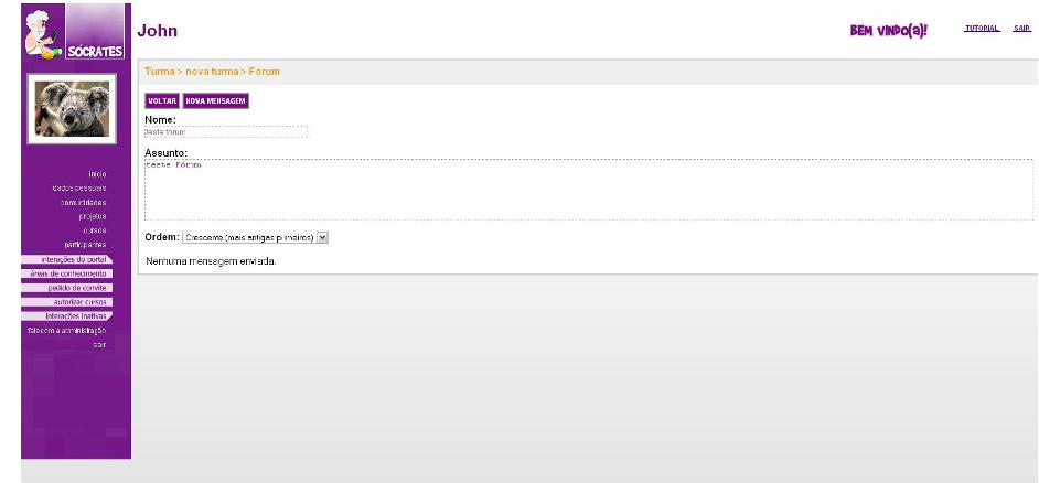Se você for membro da turma, também pode participar da discussão, clicando na opção ‘Nova Mensagem’, mostrada na tela anterior. Essa opção exibirá uma interface onde é possível digitar sua contribuição sobre o tema do fórum.