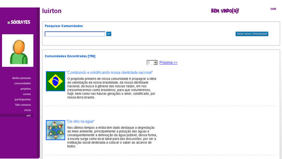 pode pesquisar entre as comunidades existentes no SÓCRATES