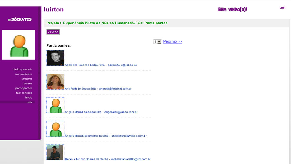 Selecionando a opção ‘Participantes’, serão disponibilizadas informações sobre os membros do projeto escolhido, como vemos na figura abaixo:
