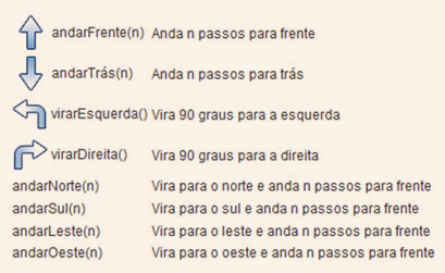 Exemplo: Anda para frente 4 passos e vira para a esquerda 6 vezes.