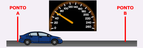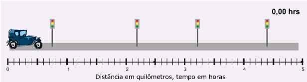 Observe o movimento do carro acima. Ele anda 5 km e gasta 0,2 h para fazer isso. Na próxima aula você aprenderá que a velocidade média do carro é de 25 km/h.
