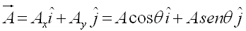 O vetor A pode ser escrito em termos de suas componentes, usando-se os vetores unitários i ao longo do eixo x e j, ao longo do eixo y: