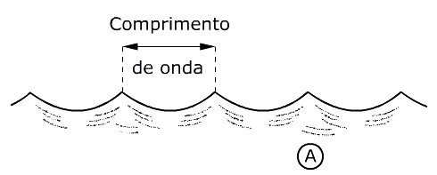 é o comprimento de onda, a distância de crista a crista da onda; e a amplitude de uma onda corresponde à altura de sua crista em relação ao nível médio da água.