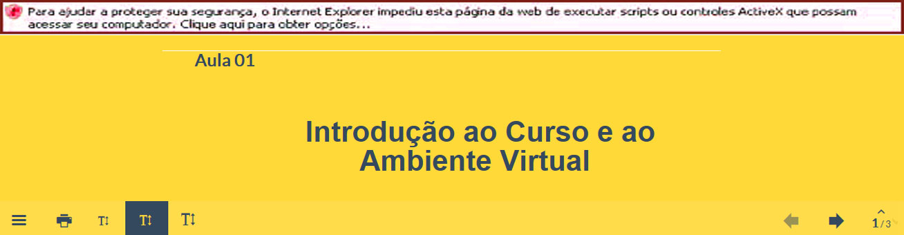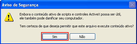 Caso seu navegador esteja com a restrição de segurança ativada, alguns recursos utilizados nesta aula não serão corretamente visualizados. Para contornar este problema, clique na barra de controle de segurança (ver figura 1); em seguida, escolha a opção que permite a execução de scripts e pop-ups. Para isto, clique no botão SIM (ver figura 2)